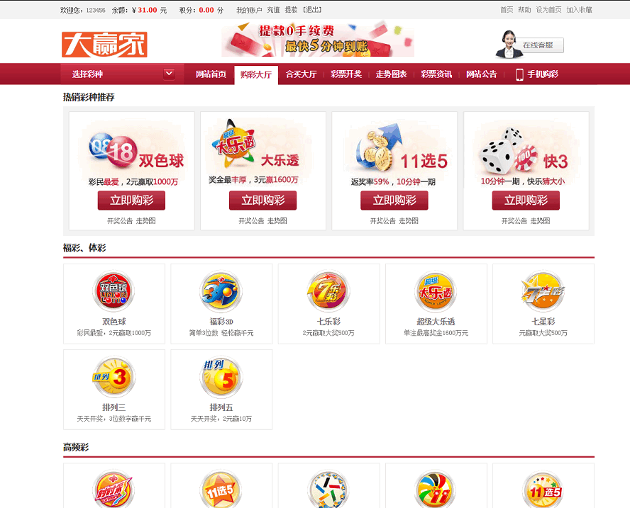 大赢家彩票平台完整版,彩票合买版本,net.aps语言开发,包含了多款热门彩种,