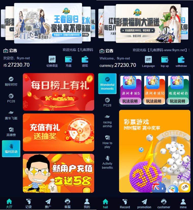 支持泰语,英语,日文,马来西亚语,繁体和中文的6种语言一键切换的彩票系统,流畅度比原来的系统大大提升。
