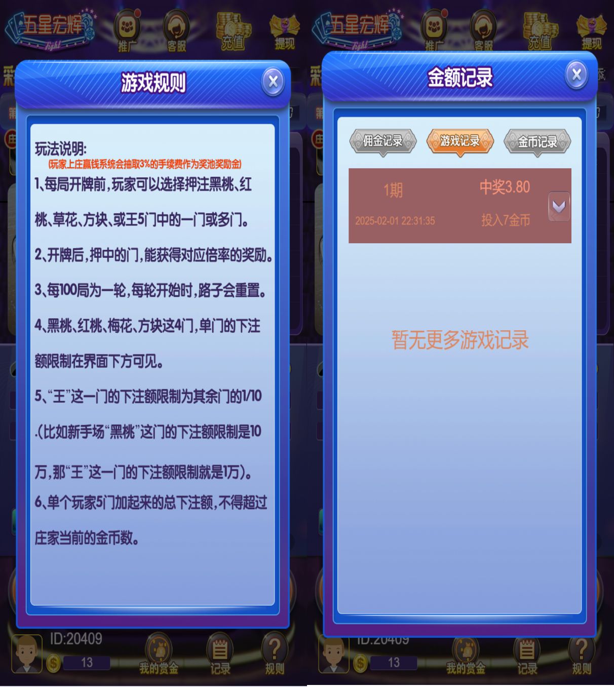 此版本和市面流通的不是一个版本,修复了诸多BUG,后台增加了预设开奖功能,可以控制开奖