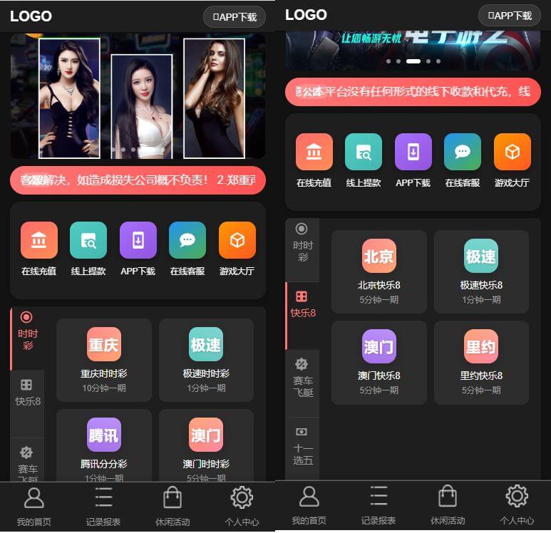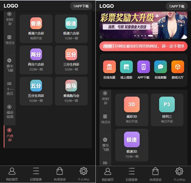 三主题模板可供选择,后台可控,彩种比较丰富,多数都是系统彩不用担心采集接口失效问题。