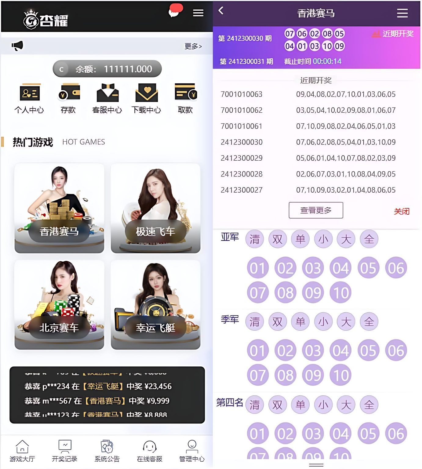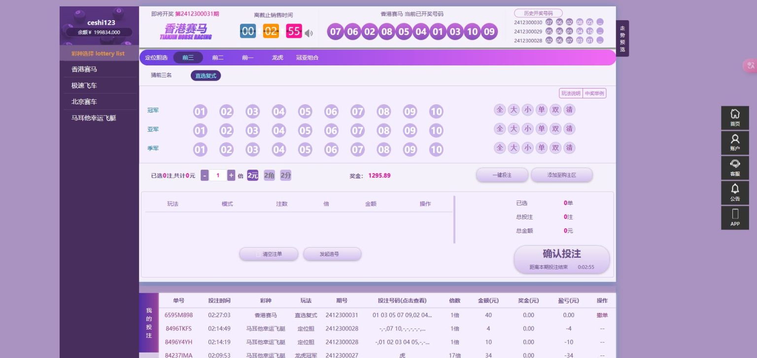 这程序就四个游戏香港赛马 北京PK10 还有幸运飞艇 极速飞车