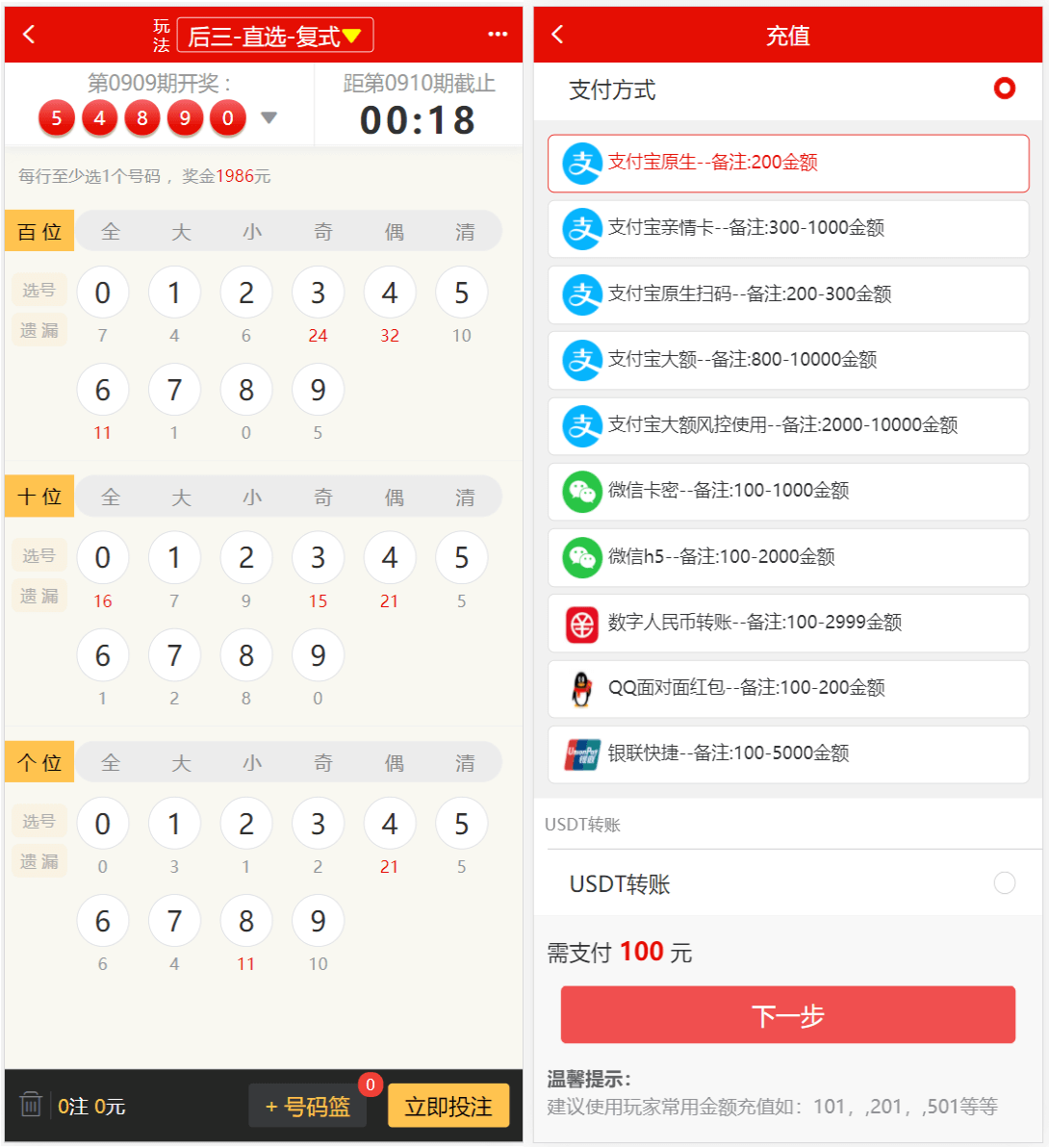 结算都没问题,带跟单追号,有团队代理功能,USDT充值